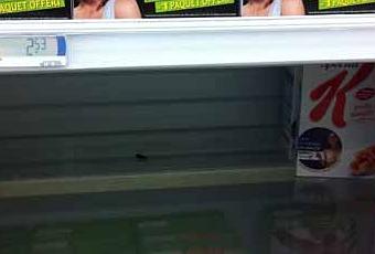 Ce constat nous l’avons fait au rayon Céréales du Cora de Massy. La première étagère de chaque gondole du rayon est transparente et permet de bien voir le stock mais aussi les dates des produits.