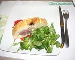 Etaler votre pâte et enrouler votre saucisson ( qui a été préalablement cuit et débarrassé de sa peau ).