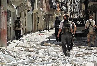 Dans ces conditions, à l’heure où l’armée proclame avoir reconquis Damas, il est à craindre qu’elle ne parvienne aisément à reconquérir Alep, même si, en fin de semaine, la ceinture de villages autour d’Alep était entièrement libérée et si la ville d’Alep était elle-même « à moitié libérée, aux mains de l’Armée Syrienne Libre (ASL) », explique Pierre Piccinin : « des quartiers de Tarik al-Bab jusqu’à Salaheddin, la ville était vendredi aux mains de la rébellion. Mais j’ai l’impression que cela va être très dur pour l’ASL de tenir le coup : la bataille de libération de Damas a été un échec parce que le matériel manquait. Pour Alep, j’ai beaucoup de craintes : des colonnes de tanks se déplacent, ils ont renforcé la base d’hélicoptères la plus proche, je ne vois pas comment Alep va pouvoir tenir le coup face à l’armée. Tout l’enjeu est au niveau de l’armement, et l’armée régulière n’est pas en rupture de stock. »
