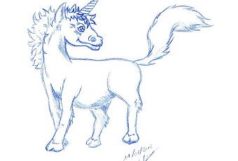 Il s'agit donc d'une pitite Licorne.Le gros défaut pour moi est sa patte arrière gauche qui est trop courte. Sinon le dessin ne se voulant pas réaliste puisque l'animal doit être représenté sous forme Kawai, genre Pokemon, ça passe.