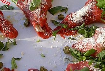 Cônes de carpaccio de boeuf mesclun Parmesan