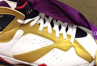 Jordan Brand a prévu une petite surprise pour ses athlètes en leur concoctant cette Air Jordan VII Olympic Gold Medal.
