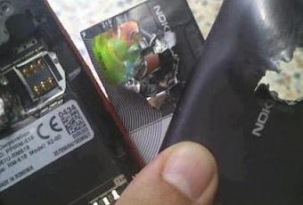 Mais voilà, tout d'un coup, une balle arrive dans sa direction et frappe le pauvre téléphone. Heureusement pour le propriétaire, la balle est restée coincé dans le combiné du Nokia.
