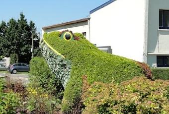 Le Château de la Fontaine précédé de deux lions grimaçants en bronze...riches terres agricoles d'autrefois inexploitées aujourd'hui.