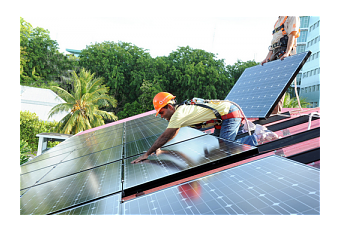 installation de panneaux aux Maldives. Photo presidencymaldives CC Flickr