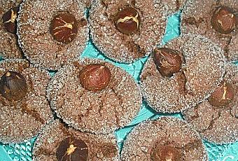- Former des boules, rouler chaque boule dans le sucre et décorer de noisettes.
