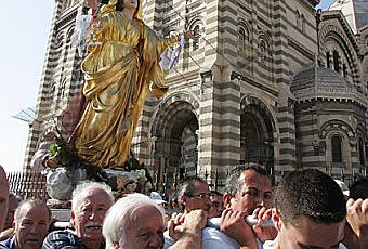 procession de l'assomption le 15 août 2008 à Marseille. (© AFP PHOTO BORIS HORVAT)