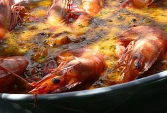 J’ai laissé le plat au four le temps que l’on déguste l’entrée et baissé le thermostat à 90 / 100° pour maintenir les filets de sole au chaud et ajouté à ce moment là, les gambas tout autour du plat en décoration. Ainsi, tout sera bien chaud au moment de servir.