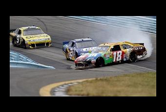 Cherchant sa deuxième victoire de la saison, Busch a mené sous drapeau blanc, mais filé à l’huile dans le premier virage par la suite et a repris la tête suite à Keselowski qui, lui aussi glissé à travers l’huile et étiqueté sa Busch Toyota n ° 18 .