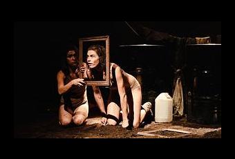 Elles vivaient cachées, on ne sait pas trop pourquoi, chacune dans un tonneau, à l’étroit. Un peu comme ces personnages de Lutz Bassmann ou de Manuela Draeger. Pas étonnant qu’on retrouve dans le texte les accents de Maria Soudaieva, autre auteur post-exotique que diffuse Antoine Volodine. Mais d’où sortent-elles ? D’un monde où l’humanité a presque disparu. Les morts sont nombreux sous et sur cette terre où que je regarde, où que je place le cadre, ceux qui ont été tués, enterrés à la va-vite, oubliés. Le titre du spectacle est celui d’un poème de Mahmoud Darwich où l’on peut lire :