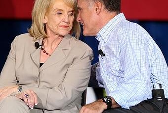 Janice Brewer, gouverneur de l'Arizona et Mitt Romney, probable candidat républicain à l'élection présidentielle américaine.