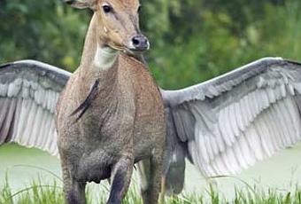 Voici ce que ça donne quand une photographie est prise au bon moment. On croirait voir une antilope ailée, alors qu'elle est simplement poursuivie par une grue antigone (un des plus grands oiseaux au monde) après s'être approchée d'un peu trop près de son nid.