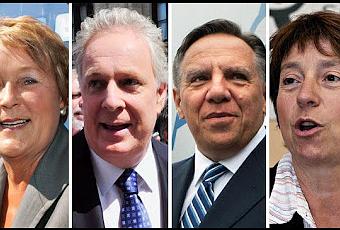Photo 1: Les 4 chefs des principaux partis politiques québécois ;