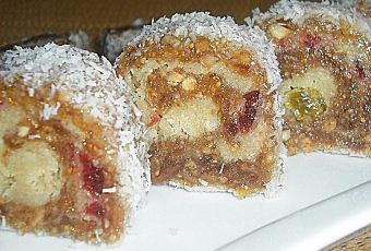 - Badigeonner de confiture et rouler dans la noix de coco.