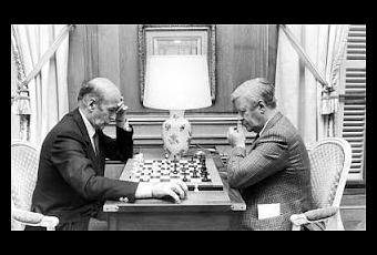 Partie d'échecs culte sur Paris-Match. Valéry Giscard d'Estaing, président de la République Française, affronte un chancelier allemand. Mais quel est son patronyme ?
