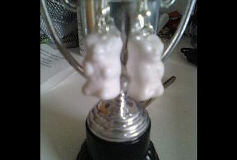 Je vous ai déjà parlé de Chooxe qui fait des super beaux bijoux dans sa belle boutique. Récemment je lui ai passé une commande spéciale. Je jouais avec les boucles d'oreille nounours violettes que je lui avais prises et je me disais que ce serait top d'en avoir des blanches, ce qui ferait des ours polaires, des Eisbären quoi ^^, je suis donc allée sur sa boutique mais pas de blanc, du coup je lui ai demandé si c'était possible d'en avoir des toutes blanches, et du coup aussi des bleu-blanc-rouge, les couleurs du club, et peu de temps plus tard, je recevais ces petites merveilles :