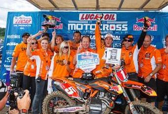 450F: En s’imposant à Unadilla, Ryan Dungey est sacré Champion outdoor 2012 (1er titre pour KTM ), Grâce à sa belle 1ere manche (2-4), Broc Tickle monte sur le podium final devant Andrew Short (4-3)
