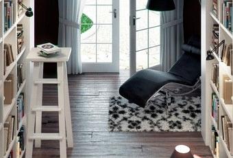 D’abord, la grande bibliothèque qui prend les pans de mur à gauche et à droite, bien remplie évidemment! Ces quelques marches pour descendre vers le coin lecture aménagé d »un bon fauteuil, histoire d’être suffisamment bien installé pour pouvoir rester plusieurs heures à lire!