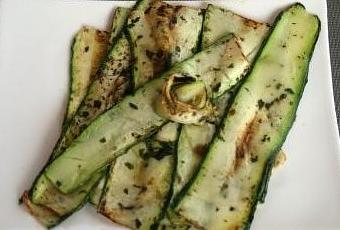 Au moment du repas, faire chauffer la plancha et cuire les lamelles de courgettes 1 min de chaque coté.