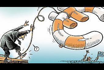 Le gouvernement multipartis en Grèce (conservateurs, socialistes et gauche modérée) est pris en tenaille entre ses bailleurs de fonds, qui exigent un nouveau plan d'austérité de 11,5 milliards d'euros pour 2013 et 2014, et le peuple qui ne supporte plus les conséquences sociales de cette rigueur massive. Il est vrai que le gouvernement grec a cédé à peu près tout ce qui restait de souveraineté nationale à la troïka...