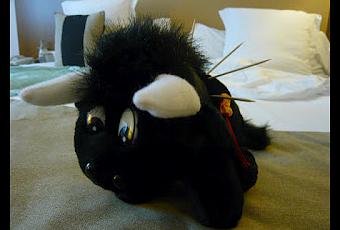 Avec une peluche et quelques cure-dents, je propose une version moins barbare (mais moins spectaculaire certes) de "l'art ancestral" (expression prétexte à perpétuer la boucherie) de la corrida ! Olé !