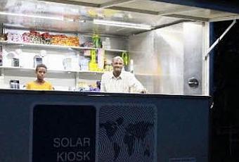 Le « Solar Kiosk » est une petite structure de forme cubique, entièrement recouverte de panneaux solaires. L’électricité qu’ils produisent va permettre aux habitants de la région de pouvoir recharger téléphones portables, ordinateurs, lampes électriques, réchauds électriques ou encore batteries de voiture.