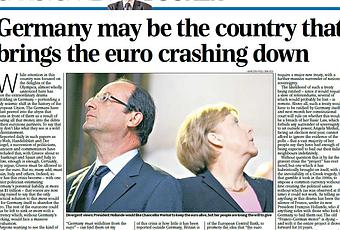 Chaque jour, dans des journaux tels que Die Welt, Handelsblatt et Der Spiegel, se succèdent politiciens, financiers et commentateurs pour dire que, avec la Grèce sur le point de faire faillite, suivie de près par l'Espagne et l'Italie, trop c'est trop. La plupart d'entre eux affirment que l'on doit laisser la Grèce quitter l'euro, idée qui bénéficie d'un soutien populaire. Beaucoup aimeraient voir la sortie de l'Espagne, de l'Italie et d'autres encore.