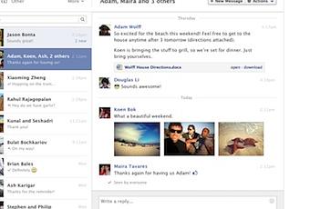 Facebook, le réseau social aux 950 millions de membres qui ingère chaque jour 500 To de données vient de commencer à relooker sa messagerie interne. Les firme de Zuckerberg, qui souhaite depuis longtemps faire de sa messagerie un véritable client mail. Le lifting en cours (visible pour tous dans les jours qui arrivent) offre une meilleure visibilité et une navigation clairement dans l’esprit de clients mails.