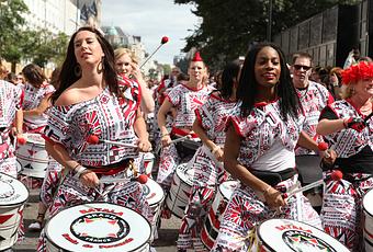 Petit frère du carnaval de Trinidad, le carnaval de Notting Hill est une célébration de la culture afro-caribéenne. Démarré en 1964 avec plusieurs centaines de spectateurs, il en attire aujourd’hui deux millions et demi ! Les rues chics de Notting Hill sont le théâtre d’un défilé incessant de groupes qui défilent les uns après les autres. Au son de leurs instruments ou au rythme de leur sound-system, hommes, femmes, enfants - ils sont environ 50 000 participants - s’exhibent et dansent dans des costumes spécialement conçus pour le carnaval et fignolés des mois à l’avance. Des prix sont d’ailleurs attribués aux meilleurs costumes.