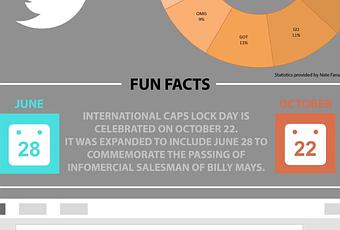 Dans la série infographie-inutile-que-je-me-fais-un-plaisir-de-relayer-bêtement, en voici une sur les mots en majuscules les plus relayés sur Twitter. C’est inutile, c’est en anglais mais ça me détend pendant que certains osent être encore en vacances.
