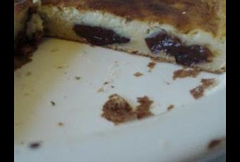 Préchauffez le four à 200°C. Beurrez et farinez le très grand moule en terre. Versez la pâte et placez les pruneaux sur le dessus.