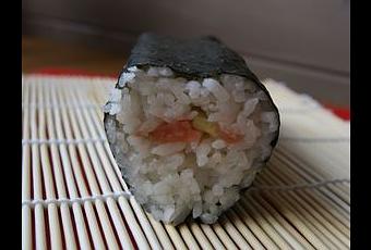 On démoule le riz, on le pose sur une feuille d'algue et on tourne pour le recouvrir entièrement.