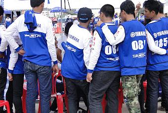 Yamaha a trouvé un palliatif (Honda aussi j’imagine) pour canaliser le trop-plein de la jeunesse, la sensibiliser à la sécurité et inculquer l’esprit de compétition dans l’optique du sport.Ici, une démonstration à Udon-Thani, au menu :Mini-courses collectives.Séances chrono.Expos des machines de course de la sociétéRemises de prix, sous forme d’article au logo Yamaha.