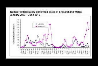 Sources: InVS Actualisation des données de surveillance de la rougeole, au 9 août 2012 Health Protection Agency Published online, 24 August 2012 HPA urges back to school vaccination as measles cases continue to increase.