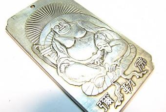 Presse-papier Bouddha Rieur en argent.