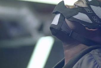 Twigs propose un travail intéressant avec un homme au regard halluciné et violent, lancé dans une chorégraphie transcendantale, masqué à la Bane avec les morceaux d’une Air Jordan V.