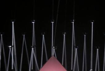 Lorsque le noir se fait dans le grand auditorium, le silence laisse place au bourdonnement de 16 drones quadricopters.