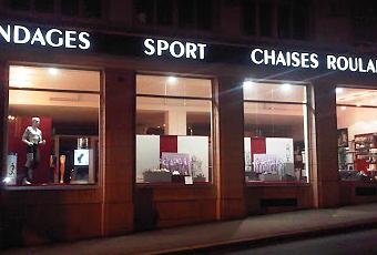 « Bandages, sport, chaises roulantes »… une drôle d’idée du sport que cet enchaînement sur la vitrine de ce magasin à Lausanne. C’est peut-être sa situation périlleuse en haut de l’avenue Beaulieu qui l’a inspiré : c’est sportif pour y arriver depuis la gare, ça monte fort et, dans l’autre sens, ça descend très vite vers le lac. Attention aux chutes si vous vous laissez emporter par la vitesse ! Heureusement la caserne des pompiers est à 200 mètres à peine...
