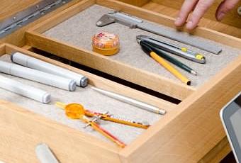 Ainsi les différents éléments de stockage s’ouvrent tout en coulissant légèrement vers l’avant dégageant alors une surface de travail pour son utilisateur. Chaque module de bois dispose d’éléments coulissants afin de ranger les petites fournitures.