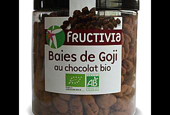 Fructivia a lancé cet été une gamme de trois superfruits bio enrobés de chocolat noir. On retrouve désormais sur leur site www.espritsante.com, des baies de goji au chocolat mais aussi des cranberries et des physalis enrobées de chocolat noir bio.