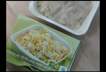 On continue donc sur la lancée Picard, avec aujourd’hui un plat individuel: le gratin de pâtes aux Saint-Jacques et fondue de poireaux. Que donne-t-il ?