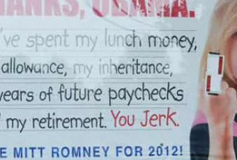 "Merci Obama, tu as dépensé mon argent pour mon déjeuner, mon argent de poche, mon héritage, mes salaires des 35 prochaines années et l'argent de ma retraite. Espèce d'abruti !"