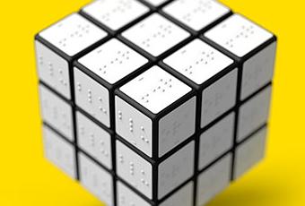 Konstantin Datz est un étudiant berlinois de 24 ans originaire de Berlin qui a réalisé un Rubiks Cube pour les aveugles. Il initié son travail par la création de pastilles en relief, en braille, qui reprennent  chacune des couleurs du Cube. Il a ensuite décollé les autocollant de couleur originels pour les remplacer par ses propres vignettes.