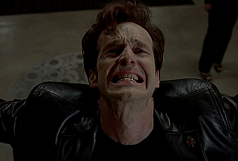 - Si j'ai bien suivi le nouveau Bill ne fait pas vraiment l'unanimité. Bizarrement, je ne l'ai jamais trouvé aussi intéressant et utile à l'intrigue. Son basculement reste bien géré, sa trahison envers Éric le scellant et il donne une nouvelle ampleur à la menace de l'Autorité avec cette formidable idée de destruction des usines de Tru Blood. Bon bien sûr, il est encore loin d'être au niveau de Russel. Celui-ci est plus en forme que jamais, faisant à la fois office d'élément comique et de bad-guy de choix. Son duo avec Newlin offre des moments géniaux d'absurdité dans la pure tradition True Bloodienne. À travers ce combo, les loups-garous trouvent d'ailleurs enfin un intérêt en offrant involontairement Emma comme loup de compagnie, ce qui sert par la même occasion à rattacher Sam et Luna à l'arc des vampires. C'est d'autre part un plaisir de voir Russel retrouver son indépendance et ses ambitions délirantes. C'est véritablement quand le personnage peut laisser libre cours à sa mégalomanie que la performance de O'Hare est la plus appréciable et peut lui donner une vraie envergure d'antagoniste. L'opposition de l'Autorité à ses projets est une complication assez prometteuse, annonçant un chaos des plus prenants... Mais qu'il va falloir gérer avec soin. - Pendant ce temps, la recherche du meurtrier des parents de Sookie et Jason emprunte des détours plus abracadabrantesques les uns que les autres. Si cela peut agacer, cela ne me dérange personnellement pas plus que ça, l'essentiel des contre-temps s'avérant plutôt funs. Celui qui propulse Sookie en plein milieu de l'arc des haters est certes très tiré par les cheveux mais renforce l'impression de délire général qui m'amuse toujours dans True Blood et décloisonne un peu tout le monde. D'autre part, je n'ai rien contre les recherches qui s'éternisent dans la mesure où cela permet d'exploiter un peu davantage le duo Sookie/Jason qui c'était fait rare mais toujours étonnamment attachant et drôle. Dans un autre genre, le duo Pam/Tara est toutefois bien plus savoureux même s'il n'y a pas grande évolution à signaler. Leur rébellion contre l'Autorité donne juste quelques moments badass assez jubilatoires et entame un rattachement à l'intrigue principale assez prometteur. - Pas des plus excitante sans non plus m'ennuyer jusque là, la traque des haters s'est quant à elle finalement révélée dans ses derniers instants. Le taux de WTF moments à la minute est soudainement multiplié par deux et on s'éclate beaucoup plus. Le parallèle avec les KKK est certes grotesque mais si l'on oublie cette tentative de la série de donner un peu de profondeur à tout ce foutoir, on a du divertissement efficace. La réapparition incongrue du shérif Bud dernièrement trouve même un intérêt pendant que le duo Sam/Luna se révèle étonnamment fun et attachantL'affligeant arc de Terry et du monstre de Lost s'achève également, Terry exécutant son sergent, apaisant ainsi les esprits tourmentés. Avant d'en arriver là, pas un seul twist ne surprend et on finit en nous servant une morale à base de loi du Talion un peu douteuse pour justifier les crimes des soldats en Irak... Mais ça reste un soulagement d'être enfin débarrassé de cette histoire, tout juste regardable pour Carrie Preston, toujours crédible dans ses gesticulations. Au milieu de tout ça, la série a jugé que le moment opportun pour se séparer de Hoyt était arrivé. Je n'ai pas bien compris pourquoi maintenant mais je lui en suis reconnaissant quoi qu'il en soit. On avait plus que fait le tour du personnage qui devenait un boulet pour tout le monde. Étonnamment, ce n'est pas par la mort que le personnage trouve sa porte de sortie dans la série et c'est un judicieux choix des auteurs que de se débarrasser de lui en faisant de son départ sa propre initiative. Ça rachète un peu le personnage à mes yeux et offre une belle scène d'adieux avec Jason et Jessica, concluant leur triangle avec l'émotion qu'il n'a jamais eu.