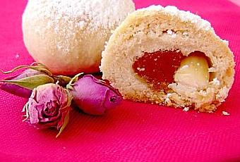 Au sortir du four, verser quelques gouttes d'eau de rose et saupoudrer de sucre glace.