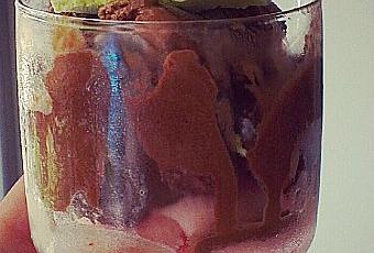 Je pense encore, assise à mon bureau, aux glaces faites maison de ma Grand Mère... Cette petite coupe pèche, chocolat au lait et pistache me laisse une envie d' "encore".