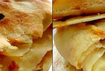 Étapes: 1. Mettez un peu de sel dans la farine. Mélangez petit à petit de l'eau avec la farine. 2. Pétrissez pour former une boule de pâte lisse et homogène. 3. Laissez reposer pendant 30 min à température ambiante. 4. Abaissez la pâte en une grande fine galette (2-3mm d’épaisseur). Mettez une fine couche d’huile sur la galette puis roulez.
