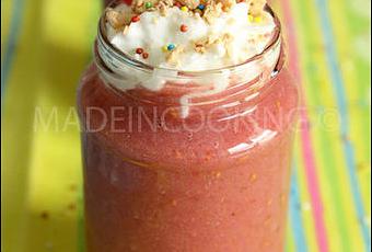 Encore une fois je fonctionne avec les moyens du bord... J'ouvre le frigo, le congélo, et qu'est ce qui reste dans la corbeille de fruits : Deux bananes, un fond de framboises surgelés, et un mixeur. J'ai encore des restes de meringues à la framboise (genre des grosses miettes). Ma mère m'a toujours dit qu'il ne fallait pas jeter... Et franchement j'ai bien fait, parce que je vous raconte pas le délice que c'est... Bien meilleur que dans mes rêves... :) Bien démarrer sa journée ou la finir... C'est comme vous voulez...