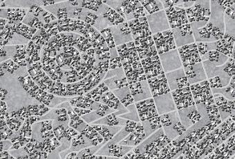 Ross Racine dessine des paysages impossibles de banlieue vue du ciel. Le paysage périphérique, chez lui, pousse à l'extrême les standards des «suburbs» nord-américains, leur symétrie, leur géométrie maladive, la répétition à l'infinie du rêve de la classe moyenne : une maison avec un jardin et un garage, au bord d'une rue tranquille, proche d'une autoroute qui mène directement aux lieux fonctionnels du quotidien (centre commercial, entreprise, loisirs) .