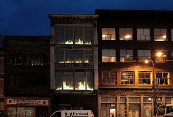 Singulièrement, l’histoire du Downtown Eastside s’amorce dans la destruction et la disparition. En 1886, peu après sa constitution en municipalité, le grand incendie s’abat sur Vancouver et rase le quartier presque entièrement (Great Vancouver Fire). L’installation vidéo